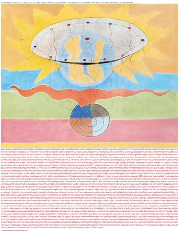 Yes, my child; this celestial drawing explains that in the infinite, where the human creature will never reach, abysmal events occur; my creation having no limit, everything exists in it; from the microscopic to the infinitely large; the latter is something that is forbidden to everyone among themselves; the colossal worlds are from the Kingdom of Heaven; one must be born again, in infinite microscopic worlds, to reach a large world; the Earth belongs to the microscopic worlds; or dust worlds; moreover, the Earth is at the same time, a giant, compared to other dust worlds; everything depends on the dimension in which one lives; the colossal does not suspect that it is colossal; nor does the microscopic; this sensation is called in the Kingdom of Heaven, transitory sensation; for eternity makes everyone return to reality; some minds try to grasp what is not within their usual reach; this is called recognized inspiration; which is nothing more than a weak detachment from the place where the spirit came from; an internal and very little studied law makes the intention of the spirit try to penetrate indirectly the matter-spirit universe; each spirit was given a momentary forgetfulness regarding all its past; therefore, each spirit has lived many presents and many pasts; all have ended, along with the mind of the flesh body; therefore; a spirit has had many bodies; has lived many times; in different destinies; has had many earthly parents; and remains the same spirit; it was written: One must be born again, to see the colossal worlds of the Kingdom of Heaven; this means that very soon on Earth, there will be a single philosophy; according to this new revelation; this philosophy will be led by the Lamb of God; the so-called sentimentalities will end; spiritual product of uncertainty and false concepts of love; only love for the divine Father is eternal; whoever cries for their own Creator, that one is received with love in the Kingdom of Heaven; there should only be respect for those who were our companions in an ephemeral life; crying for the dead is a thing of the blind; let the dead bury the dead; so it was written many centuries ago; and it means that ignorance cries for ignorance; for every adult who has lived in the world until now has never girded their way of living according to my divine mandates; almost all have eaten meat, their own brother they ate; such will never enter the Kingdom of Heaven; and all those who have eaten food in which there was bloodshed; this custom of eating each other was valid in remote times of the Earth; those creatures asked to live that philosophy; the divine Father has nothing against them; nor in their ways of living, subsisting, and dressing; they fulfilled their own law, requested in the Kingdom of Heaven; and in their customs, they created it according to their needs; there was no vice; there was adaptation to the unknown environment; spiritually they were angels, before an unknown life philosophy; that was the test of life, requested by them, in the Kingdom of Heaven; what a difference between these creatures and the current ones of the Earth world! how they will curse the so-called fashions! because every fashion is a relative form of scandal; and every scandal is of the world; these creatures are called worldly in the Kingdom of Heaven; for they come from microscopic test planets; every scandalous one does not enter the Kingdom of Heaven; as well as the so-called rich of the world; for wealth is not wisdom; it is not knowledge; and as such, it is not a tree planted by the divine Father Jehovah; and it is uprooted in the Millennium of Peace; wealth is also worldly; and it is the highest expression of human arrogance; it is and has been the worst scourge that human spirits have known in their passage through the Earth; and it still constitutes the tragedy of millions of children; all wealth achieved by exploiting their own brothers will never enter the Kingdom of Heaven; the divine Father does not curse wealth; for there are many kinds of wealth; moreover, that wealth that has created rich and poor is cursed; and nothing of it will remain on Earth; the Earth and its ambitious creatures will pass; but my divine words will not pass; from this cursed philosophy, another will emerge; fairer; more dignified; more faithful to my divine mandates the new world that begins in the year 2001 is the world that should have emerged many centuries ago; in my divine plan, the use of gold was not included; my divine laws taught and still teach the patriarchal government; one world; one flock; one destiny; one way of living; satan, reincarnated in money, divided the world; rich nations and poor nations; all enriched have already obtained on Earth their own reward; let them expect nothing from heaven; they worshiped Caesar; they worshiped gold; let Caesar resurrect them in flesh; for they have despised the divine Lamb of God; which is contrary to all aggrandizement; which lasts only a sigh compared to eternity; which gives the knowledge of all humble work to every spirit; no rich person has ever taken a penny to the Kingdom of Heaven; the Earth and its children will be judged according to intentions; according to the degree to which they fulfilled the divine Commandments; for they are the only ones that give eternal life; no one will be judged by conceptions from demons; every demon that has led my children away from the truth is cursed; the so-called religions are unknown in the Kingdom of Heaven; they are the trees not planted by the divine Father Jehovah; and they are uprooted from human evolution; religions are the first to have violated my Sacred Scriptures; for a reason, the divine Father calls it the great harlot; who trades with my divine law; not caring about the consequences of the future; the one that crowns kings; cursed creatures; blesses the weapons; with which my innocent children are killed; knowing the harlot that the divine Commandment orders not to k