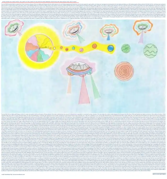 Yes, my child; the suns Alpha and Omega continue to create solar sparks; which are the germs of future planets; there reigns celestial time; one second of celestial time is equivalent to a terrestrial century; eternity in the suns makes the created worlds disappear first; because times like those of the earth planets are relative; according to the quality and nature of their requests in their Arks of the Covenants; between matter and spirit; the Earth began as a microbe; with expansive circular growth; everything on Earth was born microscopic; molecule, wind, water, fire, vegetation, etc. etc.; the growth of the Earth was a transformation from fire to matter; after a fire, don’t ashes remain? the Earth’s crust is the ash; the seas are temperatures coming out of the fire; because at the beginning everything was fire; the seas are the product of the highest temperature reached by the fire of the beginning; it was a temperature that escapes your imagination; there were at the beginning, elements that you never knew; transformations that human eyes have never seen; but yes, other creatures; and these creatures did not see what others saw; truly I tell you, the number of creatures that have passed through this world escapes all human calculation; you are of recent creation; because your planet is as many centuries old as molecules your planet has; therefore you are not the only ones, not even in your own world; no one is unique; only the Father; nor are you unique as an inhabited world; because what belongs to the Father has neither beginning nor end; there are as many inhabited worlds as grains of sand in a desert; truly I tell you, your planet is called dust-planet; because it is so tiny that no one knows you; that is why it was written: From dust you are, and to dust you shall return; from the microscopic you are and to the microscopic you return; because every spirit is born again, without leaving the microcosm; your planet belongs to the Trino galaxy; a galaxy whose limits you will never know; and your Trino galaxy is also unknown; because the living universe of Father Jehovah is so infinite that all worlds are not known; and at the same time they are known; at both extremes is the infinite; your planet was born from three solar magnetic lines; which correspond to the first geometry of: length, width, and height; a dimension of materialized evolution; this geometry is the product of your salt of life; or of your knowledge learned in other existences; because every spirit is born again; many existences it has had and will have; truly I tell you, the salt of life comes from itself; your planet Earth is the product of the salt of life of the suns Alpha and Omega; what is above is the same as what is below; there is life above and life below; in any direction the mind goes; truly I tell you, no one on Earth has been able to find their own planetary origin; because they moved away from the Scriptures of the Father; every materialistic wise man when he wants to explain the origin of his planet, always goes to the big; despite and calculate only what their eyes see; the earthly wise man did not see the beginning of your planet; he was not present at such events; he lives in a present; and infinite presents have passed; so many that the human mind will never be able to calculate them; your planet has had infinite geometric shapes; as many as the mind can imagine; it went through countless sizes; from the size of a pinhead; until reaching the current Earth ball; here is the meaning of the divine parable that says: One must be humble to be great in the Kingdom of Heaven; the telepathic concept of revelation tells you: One must be humble, tiny, and microscopic to be great in the Kingdom of Heaven; to become a colossal planet; this parable went unnoticed by the wise men of the world; they did not delve into it; they seek the truth everywhere; except where they should seek it; in the Scriptures above all things; in the Holy Scriptures is everything that men have sought for centuries; it is written halfway; because when you asked for the test of life in the Kingdom of Heaven, you also asked for the test in intellectual understanding; starting with the same interpretation of the Scriptures of the Father; you are tested starting in the interpretation of your own faith; you are tested by the same difficulties that your mind and your individuality experience; when trying to understand the Scriptures of the Father; the Scriptures of the Father represent his free will; it is his living word; the wise men of the world failed what they themselves asked for in the Kingdom of Heaven; everything is asked for in the kingdom; life and its smallest details; the wise men like the rest of the creatures of the world, asked to comply with the mandates of the Father above all things; the term: Above all things, means all things; that your mind can imagine; it is because of your promise that it was written: You shall worship your God and Lord above all things; above yourself; the wise men by not considering the Scriptures of the Father in their searches, have fallen before the Father; it is easier for a wise man who sought in the written wisdom of the Father to enter the Kingdom of Heaven than one who did not seek it; that is why no wise man in this world has been given the glory of explaining universally the origin of his planet; truly I tell you, no wise man in this world will enter the Kingdom of Heaven; first and above all the first, one must be wise in the Scriptures of the Father; because it is precisely above all things; the Earth has traveled three-quarters of its total life; it is entering planetary old age; but it has infinite centuries left; as many centuries as molecules contain a quarter of an omega circle; truly I tell you, the transformations and judgments that this world has had, by the divinity, are infinite; they are three-quarters of the lived planet; your Final Judgment marks the beginning of a Ne